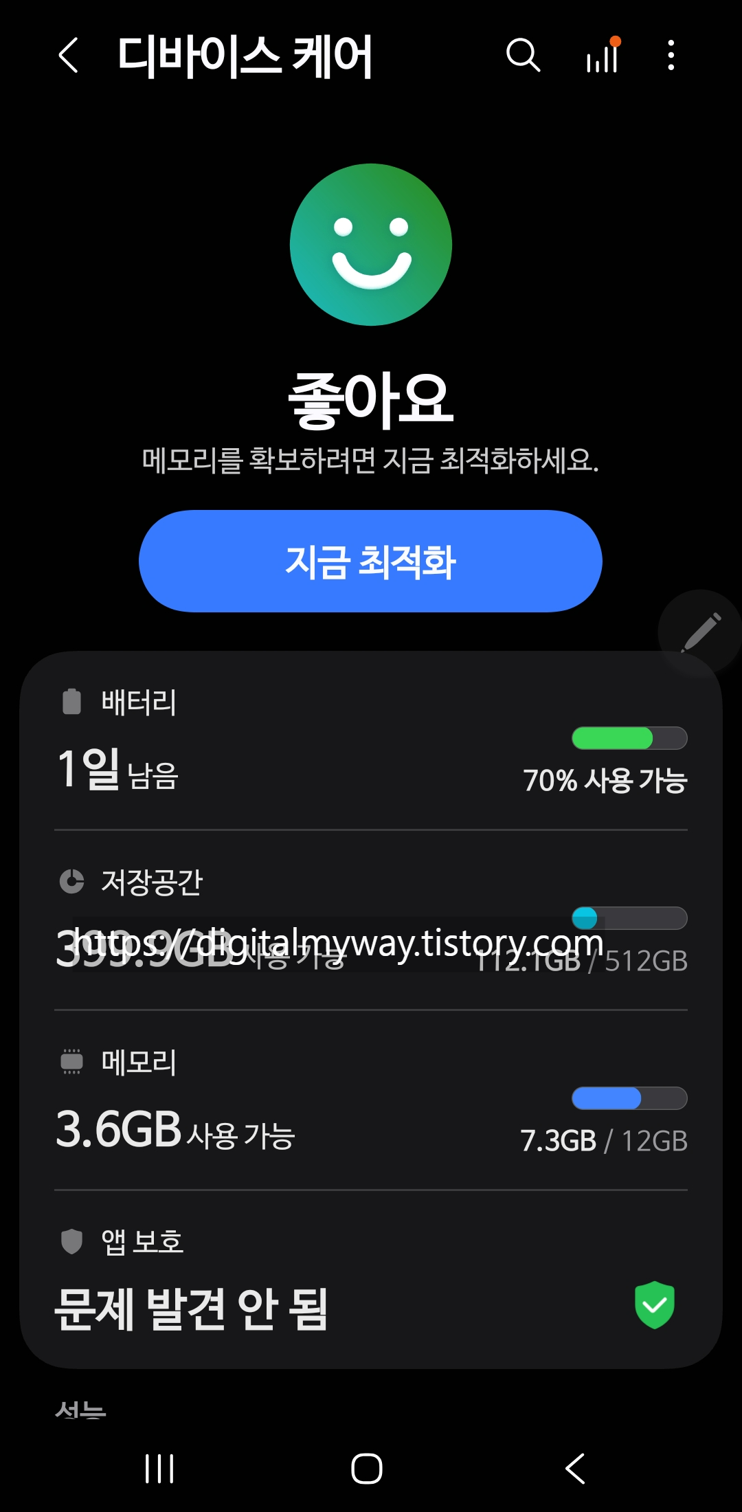 - ⚙️ ‘지금 최적화’ 기능으로 메모리 정리