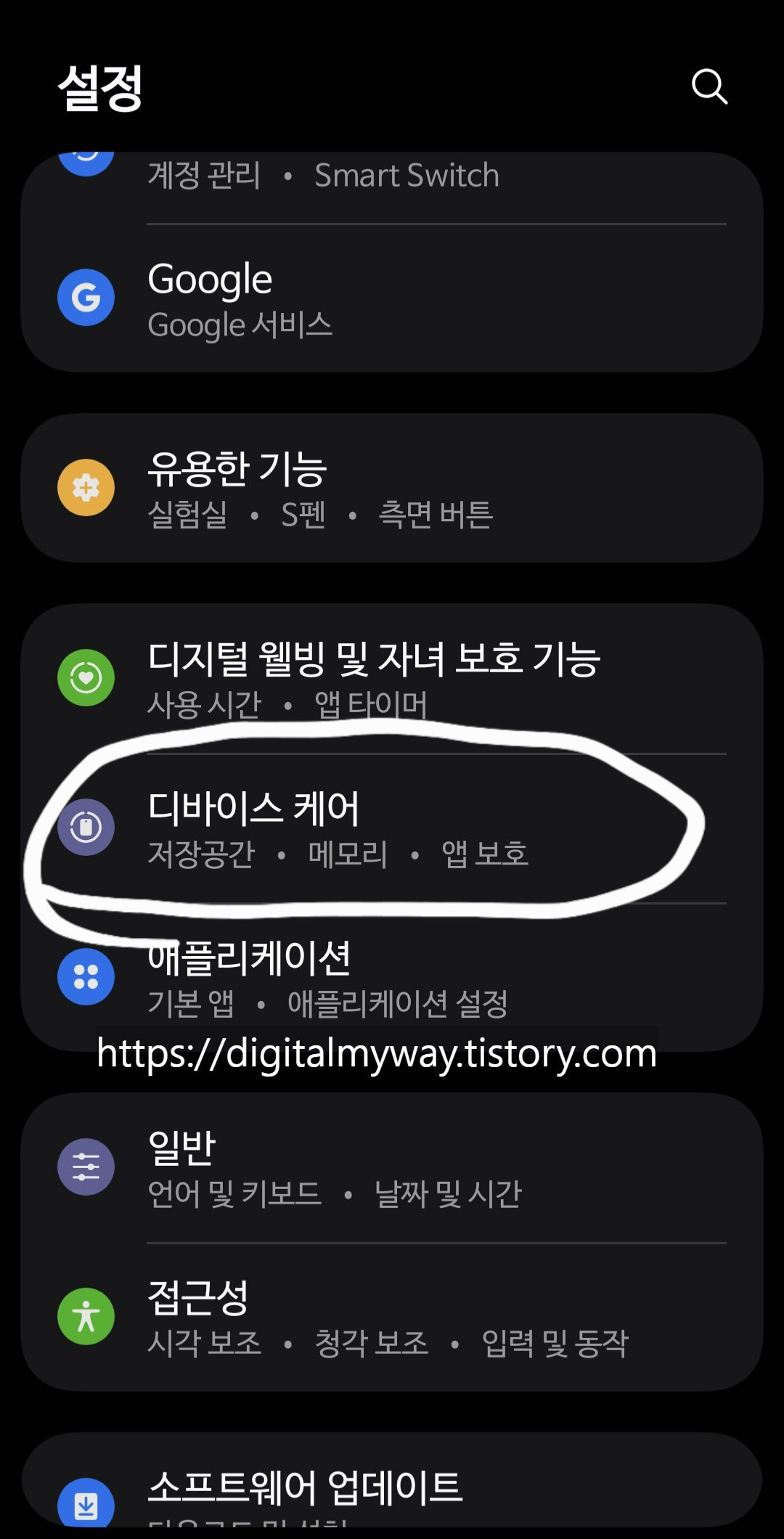 1) 설정 > [디바이스 케어] 또는 [디바이스 관리]로 들어가세요.